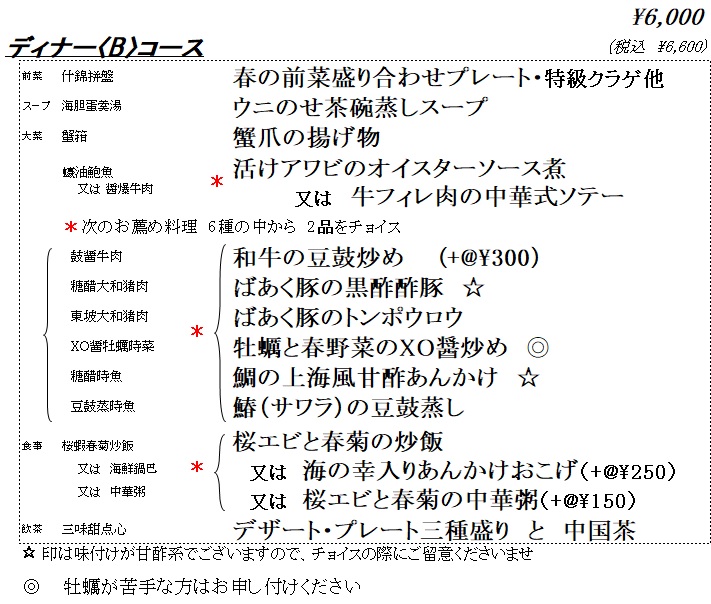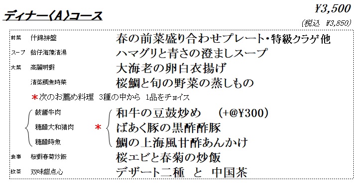 *コース料理はテーブルごとに同じものでお願いいたします。 *コース料理の選択メニューも同様とさせていただきます。