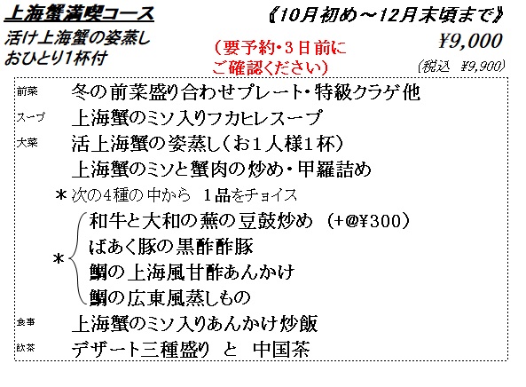 上海蟹満喫コース(期間限定)
